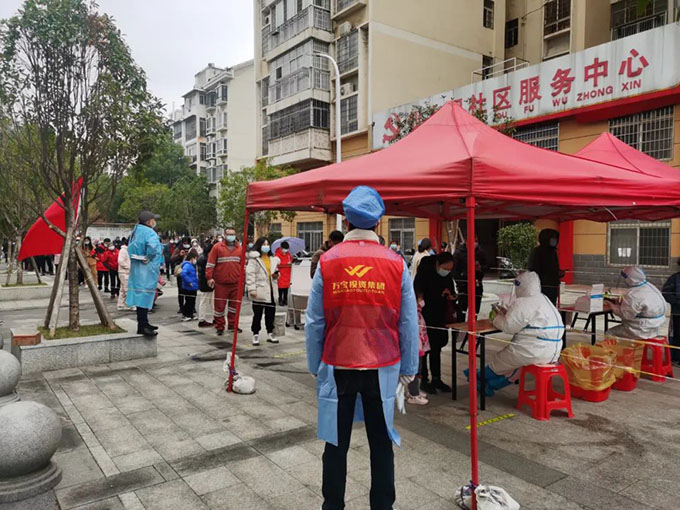 12月3日,萬寶投資集團(tuán)黨員志愿者在盛世嘉園小區(qū)核酸檢測(cè)現(xiàn)場(chǎng)幫助社區(qū)工作人員開展場(chǎng)所碼登記、秩序維護(hù)等工作。