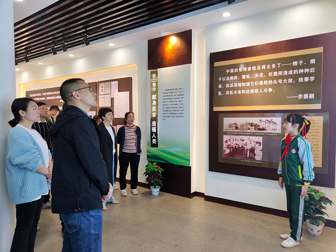 隨后,黨員們跟隨著小小解說員的腳步,參觀了“婁底市愛國主義教育基地”、“湖南省華僑文化交流基地”李振翩愛國主義事跡館。李振翩先生是萬寶鎮(zhèn)石埠村人,是世界著名醫(yī)學家、病毒學家、社會活動家,是歷史上一位傳奇人物,一名偉大的科學家,曾與毛澤東在湖南從事過學生運動,是中國共產(chǎn)黨的好朋友,是中美建交“密使”。他發(fā)明研制的小兒麻痹癥疫苗為全人類作出了杰出貢獻。通過孩子們的生動講解,大家對李振翩先生奮斗一生所取得的光輝成就和愛國主義事跡有了更深刻的了解,對振翩先生深感敬佩,同時對振翩小學的辦學理念表示了充分的認可。