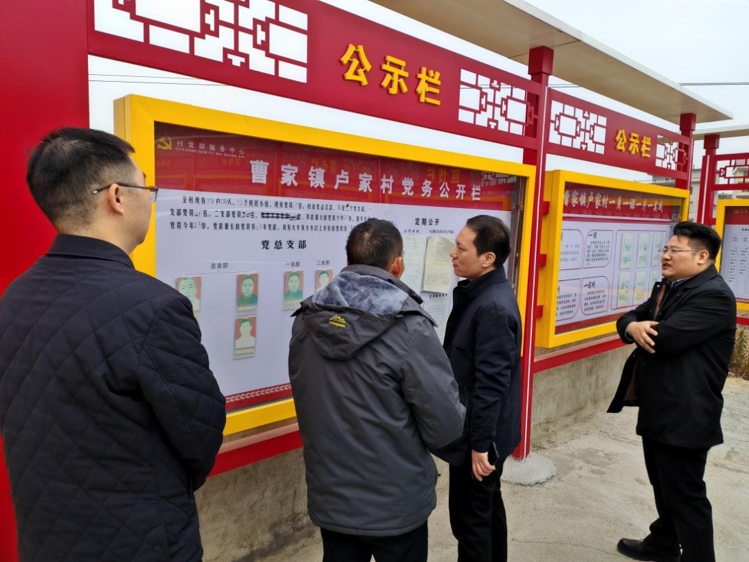 葛旭華一行到盧家村后,仔細(xì)查看了黨務(wù)公開(kāi)欄,認(rèn)真聽(tīng)取了駐村第一書(shū)記的工作匯報(bào),對(duì)駐村第一書(shū)記在村開(kāi)展的工作給予充分肯定,對(duì)盧家村2024年10月30日完成軟弱渙散村摘牌脫帽給予表?yè)P(yáng),同時(shí)指出了工作中存在的短板和弱項(xiàng),希望再接再厲,補(bǔ)短板、強(qiáng)弱項(xiàng),并就下一步黨組織建設(shè)工作提出了具體意見(jiàn)。