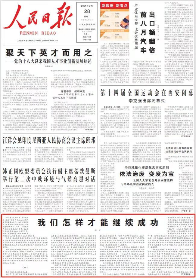 《 人民日?qǐng)?bào) 》(2021年09月28日第01版)